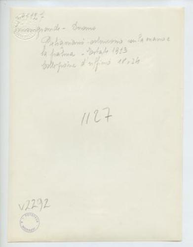 - ISCRIZIONI supporto primario: verso: in alto al centro - Lussingrande - Duomo - Reliquario-ostensorio con la mano e/ la palma. Estate 1923./ Collezione d'ufficio 18x24 - a matita -