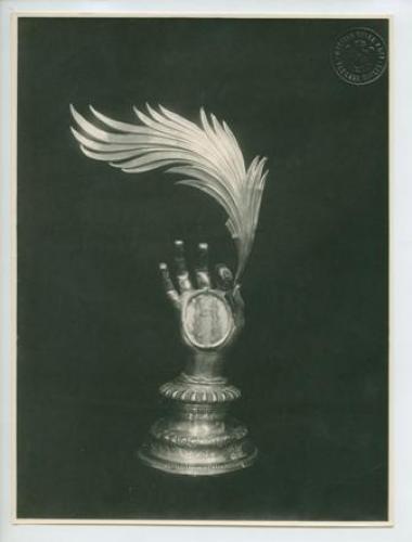 Lussingrande - Duomo: reliquario-ostensorio con la mano e la palma. Estate 1923.