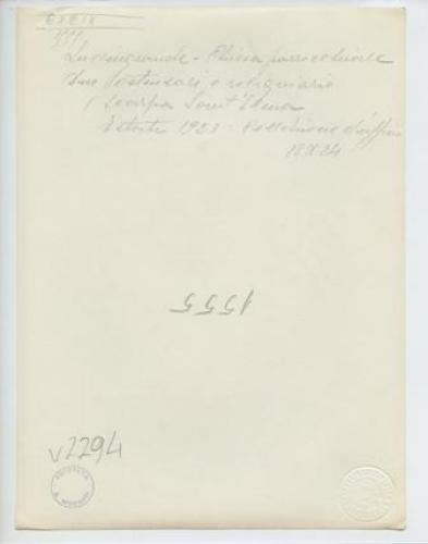 - ISCRIZIONI supporto primario: verso: a sinistra - Lussingrande - Chiesa parrocchiale/ due ostensori e reliquario/ (Scarpa di Sant'Elena/ Estate 1923. Collezione d'ufficio/ 18x24 - a matita -