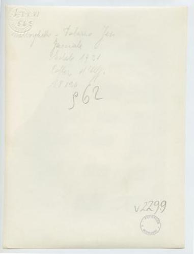 - NOTIZIE STORICO CRITICHE La fotografia fa parte dell'insieme archivistico denominato "Venezia Giulia" (tre cartelle: V. VIII, V. IX, V. X), nello specifico, è conservata all'interno della cartella V. IX. E' stata realizzata nell'estate 1921 da Pietro Opiglia, che dal 1908 al 1947, svolse il ruolo di fotografo presso il Museo Civico triestino e del quale si serviva l'Ufficio Belle Arti della Venezia Giulia durante le proprie campagne fotografiche. In questo caso, l'Ufficio Belle Arti aveva promosso una campagna ricognitiva circa le opere d'arte presenti sul territorio transfrontaliero che oggi comprende il Friuli Venezia Giulia, la Croazia e la Slovenia. Si ricorda, inoltre, che Antonio Morassi svolse il ruolo di funzionario sovrintendente presso l'Ufficio Belle Arti della Venezia Giulia dal 1920 al 1925.