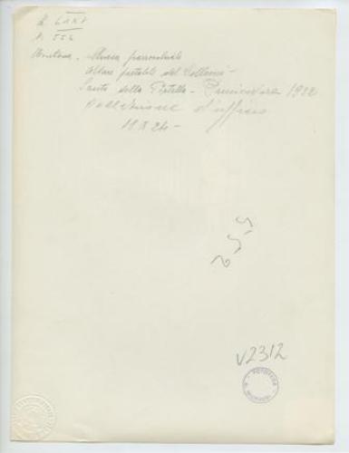 - ISCRIZIONI supporto primario: verso: in alto al centro - Montona - Chiesa parrocchiale/ Altare portatile del Colleoni/ Santo della portella. Primavera 1922/ Collezione d'ufficio/ 18x24 - a matita -