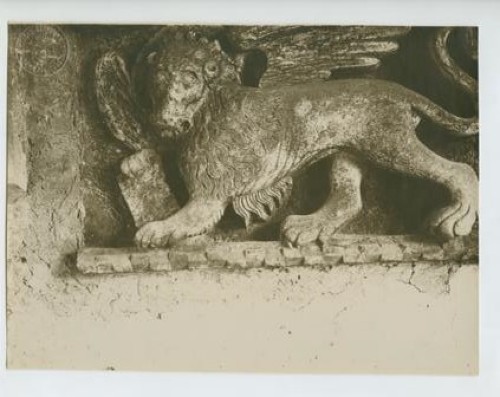 Montona - Leone di S. Marco sotto l'atrio del portone d'ingresso alla città. Primavera 1922.