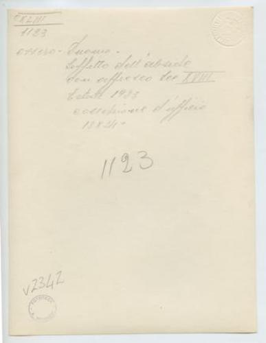 - ISCRIZIONI supporto primario: verso: a destra - Ossero - Duomo/ Soffitto dell'abside/ con affresco Sec. XVIII/ Estate 1923/ Collezione d'ufficio/ 18x24 - a matita -