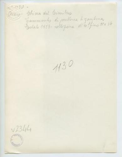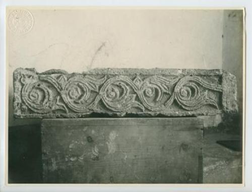 Ossero - Chiesa del cimitero: frammento di scultura bizantina. Estate 1923.