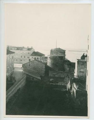 Parenzo - Veduta delle fortificazioni delle mura e delle torri verso il mare. Estate 1921