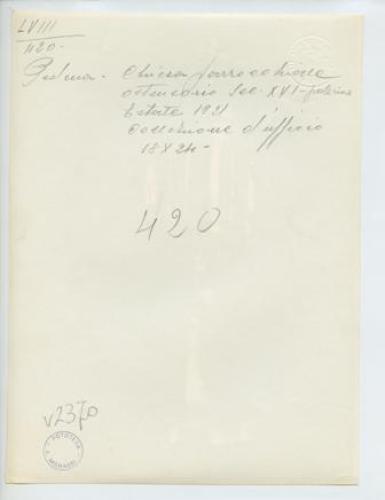 - ISCRIZIONI supporto primario: verso: in alto al centro - Pedena - Chiesa parrocchiale/ ostensorio sec. XVI-posteriore/ Estate 1921/ collezione d'ufficio/ 18x24 - a matita -