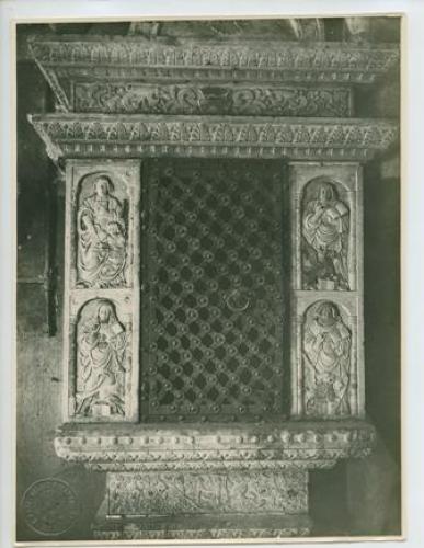 Pirano - Chiesa parrocchiale: tabernacolo in pietra, dettaglio. Estate 1921.