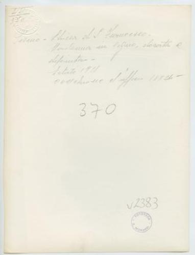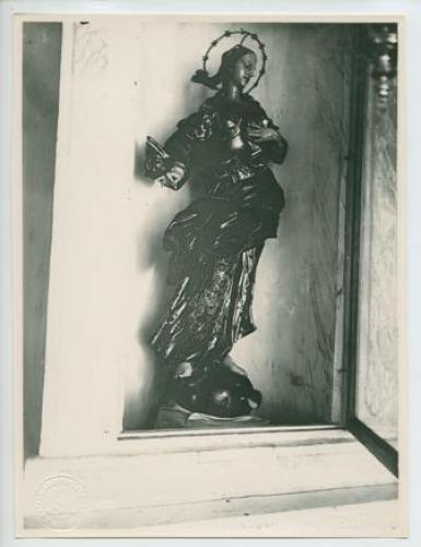 - NOTIZIE STORICO CRITICHE La fotografia fa parte dell'insieme archivistico denominato "Venezia Giulia" (tre cartelle: V. VIII, V. IX, V. X), nello specifico, è conservata all'interno della cartella V. IX. E' stata realizzata nell'estate 1921 da Pietro Opiglia, che dal 1908 al 1947, svolse il ruolo di fotografo presso il Museo Civico triestino e del quale si serviva l'Ufficio Belle Arti della Venezia Giulia durante le proprie campagne fotografiche. In questo caso, l'Ufficio Belle Arti aveva promosso una campagna ricognitiva circa le opere d'arte presenti sul territorio transfrontaliero che oggi comprende il Friuli Venezia Giulia, la Croazia e la Slovenia. Si ricorda, inoltre, che Antonio Morassi svolse il ruolo di funzionario sovrintendente presso l'Ufficio Belle Arti della Venezia Giulia dal 1920 al 1925.