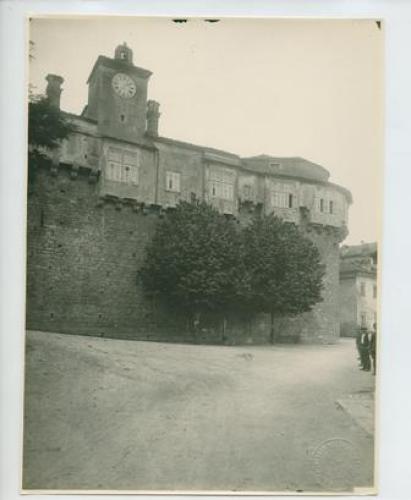 Pisino - Castello: facciata con torretta dell'orologio. Estate 1921.