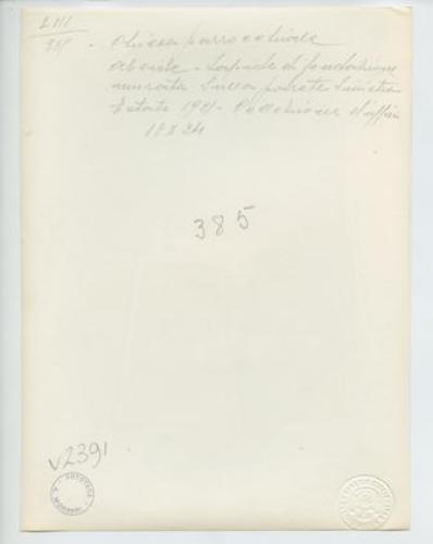 - ISCRIZIONI supporto primario: verso: in alto al centro - Pisino - Chiesa parrocchiale/ abside. Lapide di fondazione/ murata sulla parete sinistra/ Estate 1921. Collezione d'ufficio/ 18x24 - a matita -