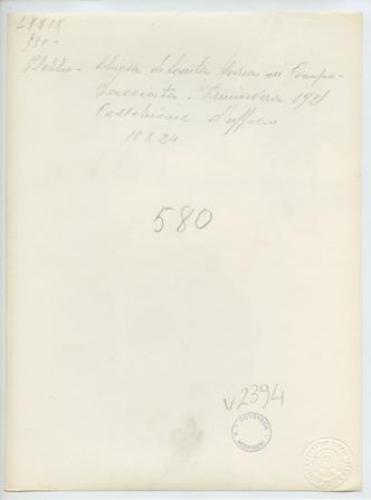 - NOTIZIE STORICO CRITICHE La fotografia fa parte dell'insieme archivistico denominato "Venezia Giulia" (tre cartelle: V. VIII, V. IX, V. X), nello specifico, è conservata all'interno della cartella V. IX. E' stata realizzata nella primavera 1921 da Pietro Opiglia, che dal 1908 al 1947, svolse il ruolo di fotografo presso il Museo Civico triestino e del quale si serviva l'Ufficio Belle Arti della Venezia Giulia durante le proprie campagne fotografiche. In questo caso, l'Ufficio Belle Arti aveva promosso una campagna ricognitiva circa le opere d'arte presenti sul territorio transfrontaliero che oggi comprende il Friuli Venezia Giulia, la Croazia e la Slovenia. Si ricorda, inoltre, che Antonio Morassi svolse il ruolo di funzionario sovrintendente presso l'Ufficio Belle Arti della Venezia Giulia dal 1920 al 1925.