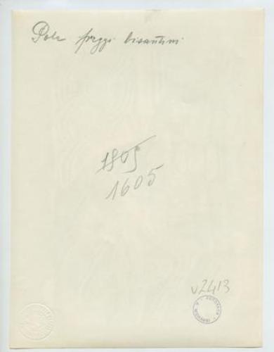 - ISCRIZIONI supporto primario: verso: in alto - Pola - Fregi bizantini - a matita -