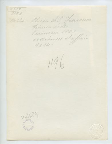 - ISCRIZIONI supporto primario: verso: in alto al centro - Rozzo - Chiesa di S. Francesco/ Fianco destro/ Primavera 1923/ Collezione d'ufficio/ 18x24 - a matita -