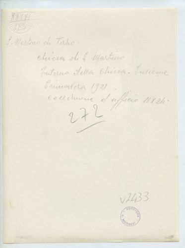 - ISCRIZIONI supporto primario: verso: a destra - S. Martino di Terzo/ Chiesa di S. Martino/ Interno della chiesa. Insieme/ Primavera 1921/ Collezione d'ufficio 18x24 - a matita -