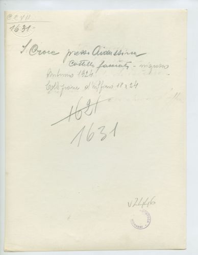 - ISCRIZIONI supporto primario: verso: in alto al centro - S. Croce presso Aidussina/ castello facciata - ingresso/ Autunno 1924/ Collezione d'ufficio 18x24 - a matita -
