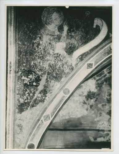 Sanvincenti - Chiesa di S. Caterina: affresco sull'arco santo. Annunciazione, l'angelo, sec. XIV.
