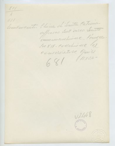 - ISCRIZIONI supporto primario: verso: in alto al centro - Sanvincenti - Chiesa di S. Caterina/ affresco sull'arco Santo/ annunciazione./ l'angelo/ Sec. XIV. Collezione ex/ conservatore Gnirs/ 18x24 - a matita -