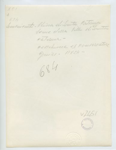 - NOTIZIE STORICO CRITICHE La fotografia fa parte dell'insieme archivistico denominato "Venezia Giulia" (tre cartelle: V. VIII, V. IX, V. X), nello specifico, è conservata all'interno della cartella V. IX. La fotografia faceva presumibilmente parte di un nucleo di documenti appartenuti ad Anton Gnirs (1873-1933), il quale, dal 1902, ricopriva il ruolo di Conservatore della Commissione per l'Arte e la Conservazione a Vienna e, nello specifico, per il territorio dell'attuale Istria.