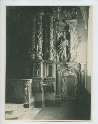 S. Vito di Vipacco - Chiesa di S. Vito: altare barocco in legno scolpito, dettaglio. Primavera 1924.