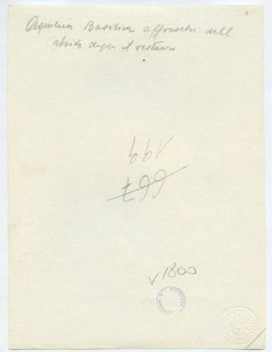 - ISCRIZIONI supporto primario: verso: in alto al centro - Aquileia Basilica affreschi dell/ abside dopo il restauro - a matita -