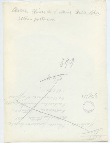 - ISCRIZIONI supporto primario: verso: in alto al centro - Auzza - Chiesa di S. Maria della Neve/ esterno posteriore - a matita -