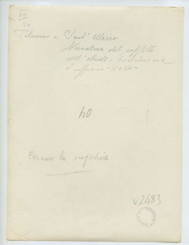 - ISCRIZIONI supporto primario: verso: in alto al centro - Tolmino - Sant'Ulrico/ Nervatura del soffitto/ dell'abside. Collezione/ d'ufficio 18x24 - a matita -