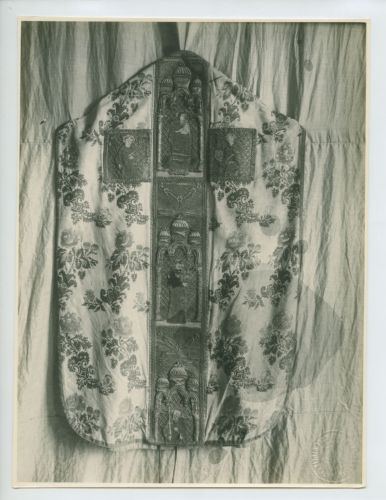 Trieste - I Esposizione arte popolare 1922: pianeta ricamata in argento con figure di Santi, sec. XVI. Cherso (Signora Moratto).).