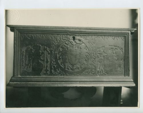 Trieste - I Esposizione d'arte popolare: cassettiera istriana in legno intagliato. Autunno 1922.