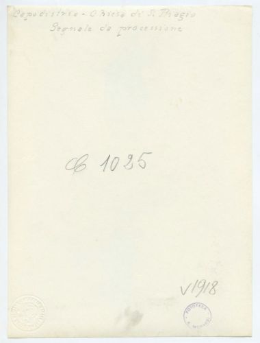 - ISCRIZIONI supporto primario: verso: in alto al centro - Capodistria - Chiesa di S. Biagio/ Segnale da processione - a matita -