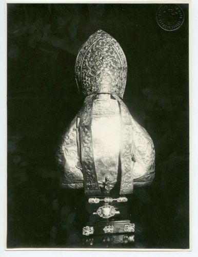 Capodistria - Concattedrale, busto di vescovo in argento sbalzato, tergo, sec. XVII