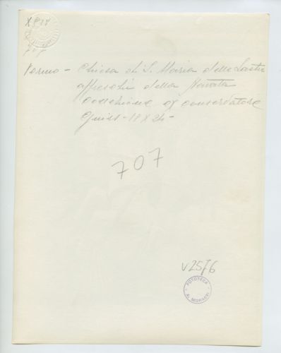 - ISCRIZIONI supporto primario: verso: in alto al centro - Vermo - Chiesa di S. Maria delle Lastre/ affreschi della Navata/ Collezione ex Conservatore/ Gnirs. 18x24 - a matita -