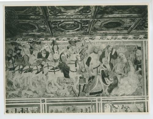 Vermo - Chiesa di Santa Maria delle Lastre, affreschi della navata: corteo dei cavalieri.