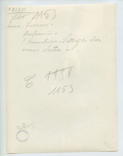- NOTIZIE STORICO CRITICHE La fotografia fa parte dell'insieme archivistico denominato "Venezia Giulia" (tre cartelle: V. VIII, V. IX, V. X), nello specifico, è conservata all'interno della cartella V. IX. E' stata realizzata presumibilmente nella primavera del 1924 (confronto con esemplari simili) da Pietro Opiglia, che dal 1908 al 1947, svolse il ruolo di fotografo presso il Museo Civico triestino e del quale si serviva l'Ufficio Belle Arti della Venezia Giulia durante le proprie campagne fotografiche. In questo caso, l'Ufficio Belle Arti aveva promosso una campagna ricognitiva circa le opere d'arte presenti sul territorio transfrontaliero che oggi comprende il Friuli Venezia Giulia, la Croazia e la Slovenia. Si ricorda, inoltre, che Antonio Morassi svolse il ruolo di funzionario sovrintendente presso l'Ufficio Belle Arti della Venezia Giulia dal 1920 al 1925.