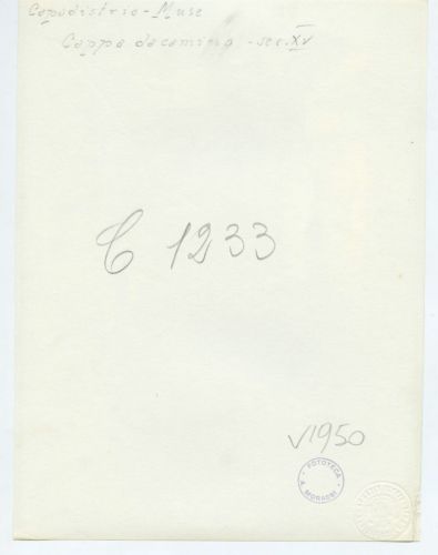 - ISCRIZIONI supporto primario: verso: in basso al centro - Capodistria - Muse/ Cappa da camino - sec. XV - a matita -