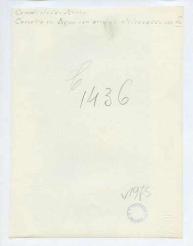 - ISCRIZIONI supporto primario: verso: a sinistra - Capodistria - Museo/ Cassetta in legno con aironi stilizzati - sec. XIV - a matita -