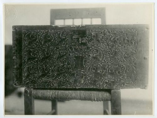 Capodistria - Museo, cassetta in legno con aironi stilizzati, sec. XIV