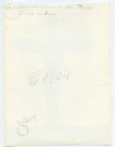 - ISCRIZIONI sul supporto primario: verso: in alto al centro - Capodistria - Chiesa di San Basso/ Cristo in legno - a matita -