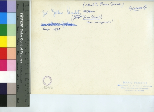 - ISCRIZIONI sul supporto primario: verso - (attrib.to a Franc. Guardi)/ Milano/ (certo! prob.te Giacomo Guardi)/ non menzionare!/ Giacomo G. - Già Galleria Saurdoti - luglio 1970 - Mario Perotti/ Fotografie di quadri e sculture/ Galleria [...]/ Milano-Tel. [...] - Fototeca-A. Morassi - 15.916 - Morassi, Antonio e collaboratori. Collaboratori dell'Archivio Fototeca Antonio Morassi -