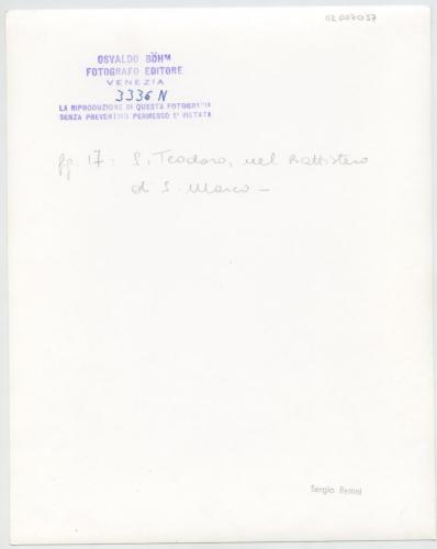 - ISCRIZIONI supporto primario: recto: in basso - [Chiesa S. Marco - Battistero. S. Teodoro (secolo 14.). NAYA VENEZIA] - a matita -