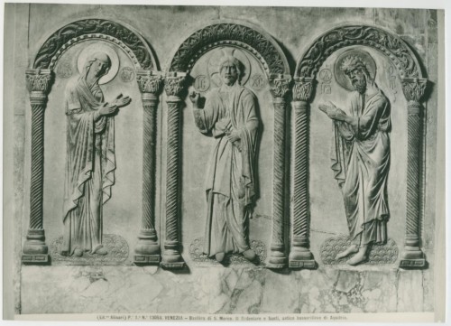 - ISCRIZIONI supporto primario: recto: in basso - (Ed. ne Alinari) P.e 1.a N.° 13053. VENEZIA - Basilica di S. Marco. Il Redentore e Santi, antico bassorilievo di Aquileia. - a matita -