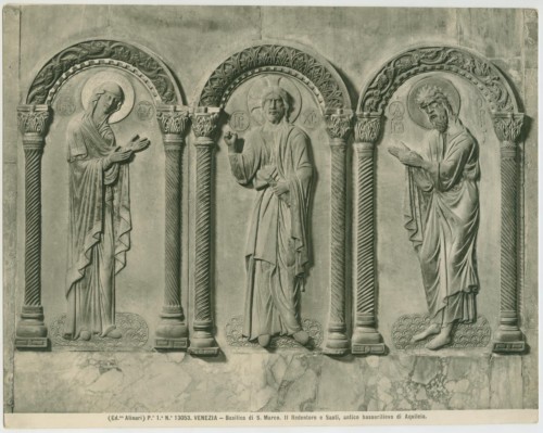 - ISCRIZIONI supporto primario: recto: in basso - (Ed. ne Alinari) P.e 1.a N.° 13053. VENEZIA - Basilica di S. Marco. Il Redentore e Santi, antico bassorilievo di Aquileia. - a matita -