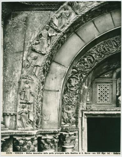 - ISCRIZIONI supporto primario: recto: in basso - 22578 - VENEZIA - Motivo decorativo della porta principale della Basilica di S. Marco - sec. XIII Ripr. Int. Anders - a matita -