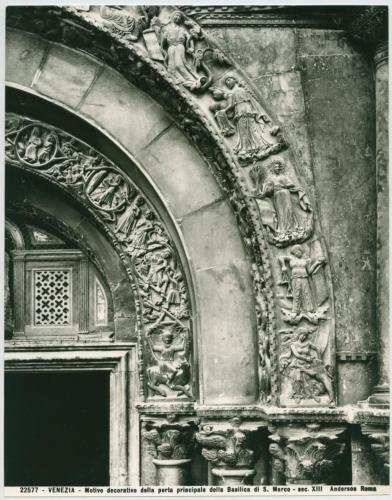 - ISCRIZIONI supporto primario: recto: in basso - 22577 - VENEZIA - Motivo decorativo della porta principale della Basilica di S. Marco - sec. XIII Anderson Roma - a matita -