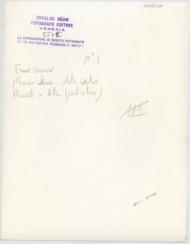 - ISCRIZIONI supporto primario: verso: a sinistra - n° 1/ primo arcone/ fascia interna - lato destro/ Animali in lotta (particolare) - a matita -