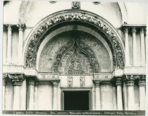 - ISCRIZIONI supporto primario: recto: in basso - O. Böhm 3150 Venezia. San Marco. Facciata settentrionale. Dettaglio della Porta - a matita -