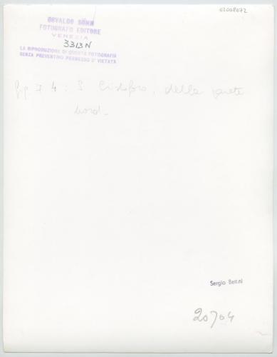 - ISCRIZIONI supporto primario: recto: in basso - 3313 Venezia - Chiesa S. Marco - Lato settentrionale. S. Cristoforo (bassorilievo bizantino). NAYA VENEZIA - fig. 74: S. Cristoforo, della parete nord - a matita -