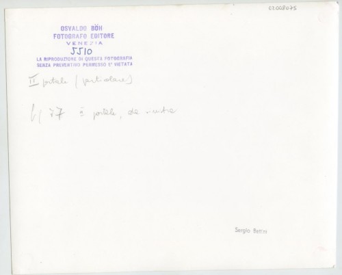 - ISCRIZIONI supporto primario: verso: in alto - II portale (particolare) - a matita -