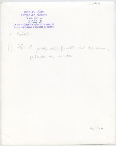 - ISCRIZIONI supporto primario: recto: in basso - 2334 - VENEZIA Chiesa S. Marco. Parte superiore della 2 [corretto:] 1° porta a destra. NAYA Venezia - a matita -