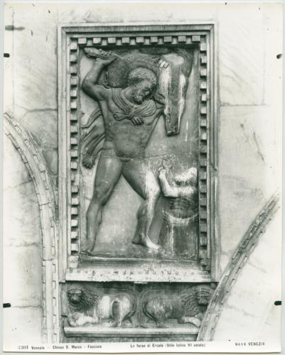 - ISCRIZIONI supporto primario: recto: in basso - 3301 Venezia - Chiesa S. Marco - Facciata. Le forze di Ercole (stile latino VI secolo). NAYA VENEZIA - a matita -