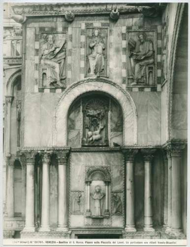 - ISCRIZIONI supporto primario: recto: in basso - (Ed.ne Alinari) N.° 20701. VENEZIA - Basilica di S. Marco. Fianco sulla Piazzetta dei Leoni. Un particolare con rilievi Veneto-Bizantini. - a matita -